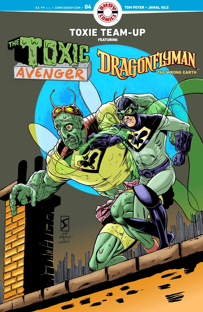 Teaming AHOY’s Toxic sensation with the heroes of the critically acclaimed THE WRONG EARTH, in an all-new story by the Wrong Earth creative team! With his sidekick away on a Young Pioneer retreat, Dragonflyman recruits a new partner-in-peril: the Toxic Avenger! Together they face the psychotropic villainy of art criminal King Rembrandt—and a police riot!
