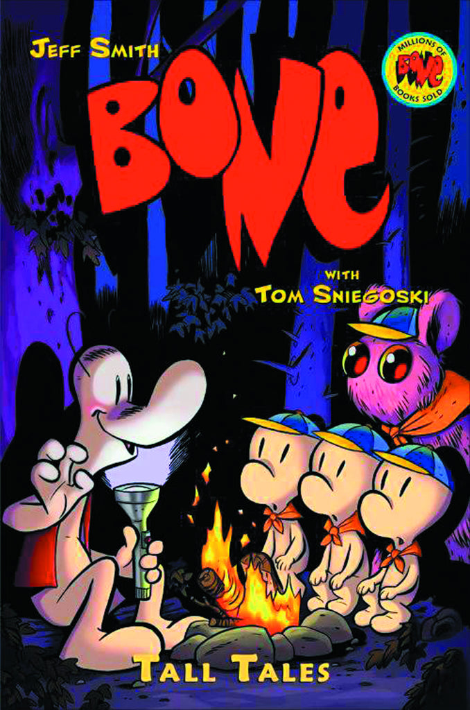 Ever wonder what happened before the Bone cousins got lost in the uncharted forest of the Valley? This is a hilarious companion to Jeff Smith's bestselling, award-winning BONE saga! Long before the Bone cousins were ever lost in the uncharted forest of the Valley, Big Johnson Bone, the discoverer of the Rolling Bone River, founded Boneville. But little is known of the mighty explorer's adventures before he started his famous trading post. So when Smiley Bone sits down with a group of young scouts to retell the legendary stories of Boneville's origins, what they hear are wild antics complete with Rat Creatures, Dragons, and a snarky little monkey!