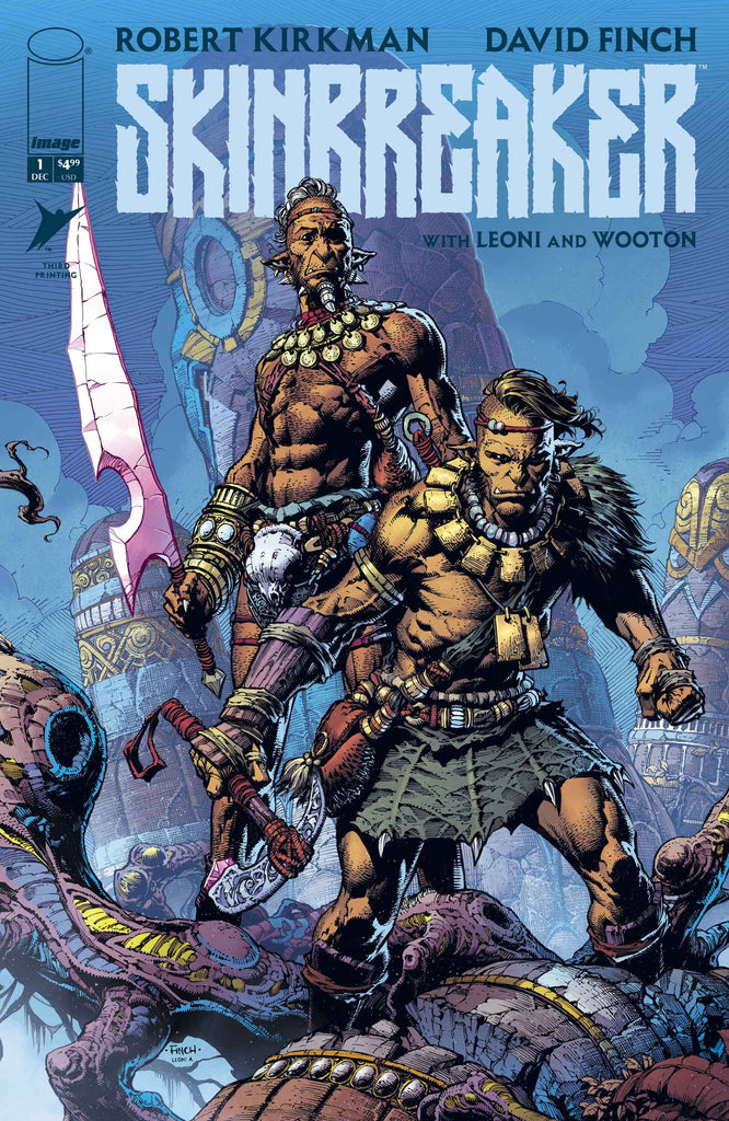 SERIES PREMIERE FOR FANS OF INVINCIBLE UNIVERSE: BATTLE BEAST COMES YOUR NEW FAVORITE SERIES! **The dream team of ROBERT KIRKMAN** (THE WALKING DEAD_, _INVINCIBLE) and superstar artist DAVID FINCH (Batman, New Avengers) present a visionary action epic unlike anything you’ve ever seen. Enor has led his tribe for many seasons, but his time as Chieftan is coming to an end. He wields the mighty SKINBREAKER, but at his age, he can barely lift it. Will Enor’s reluctant heir, Anok, take over before their world falls to ruin? As a bloody power struggle begins, an even bigger threat lurks in the darkness beyond their village. SKINBREAKER tells the story of a people on the verge of collapse and their fight for survival as the many threats they face close in for the kill.