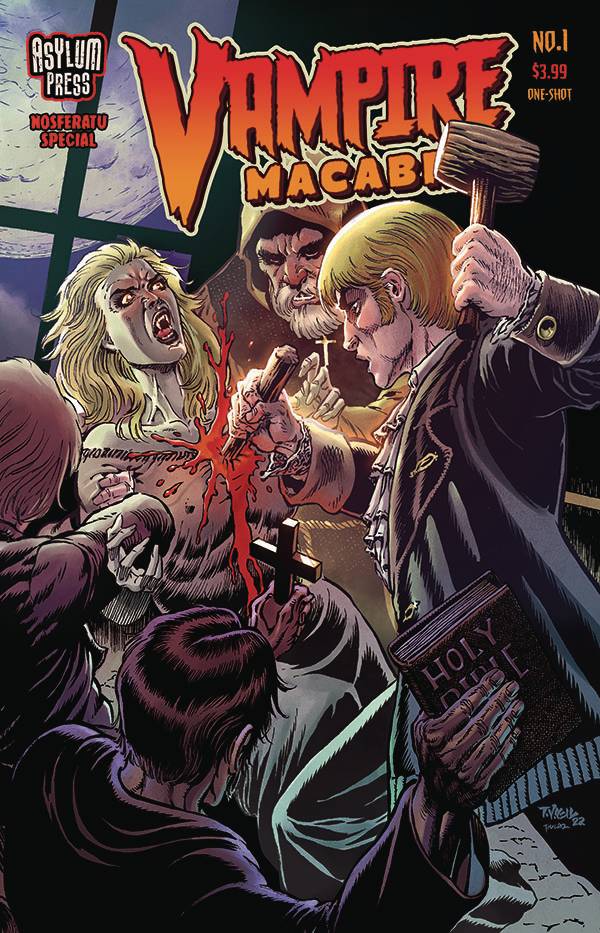 Asylum Press brings you a horrific blood thirsty collection of all-new Vampire tales. Featuring an international cast of artistic talent. Frank Forte delivers another installment of our favorite vampire queen Nosferazixx! Frank Forte and Edu Menna revive Zephira: The Night Killer for another round of post-apocalyptic vampiric action. And lastly, Tim Vigil (Faust, Gothic Nights) gives us "Feline Fatale" A seductive female Vampire wakes up from her coffin and prepares to walk the night, she is interrupted by a prowling black cat. A must for all vampire fans!
