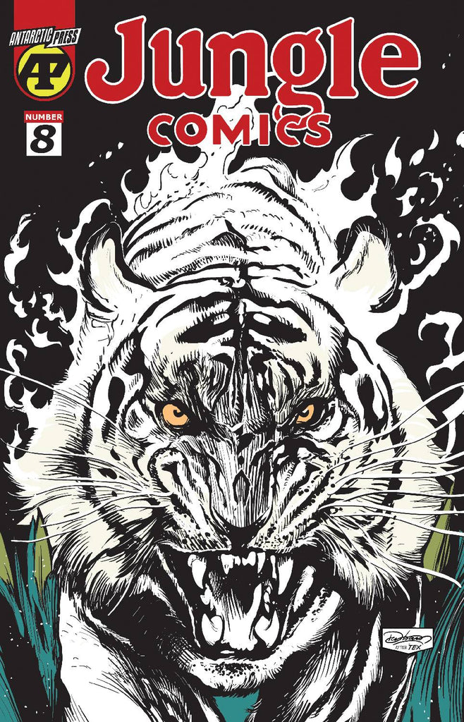 "The Adventures of Zan the Jungle Lord": The expedition members encounter Zan for the first time! But will he be their friend or foe? Antarctic Press proudly presents these classic jungle adventures straight out of the Swinging '70s by Italian creators Giuseppe Pederiali, Roberto Renzi, and Bruno Marraffa