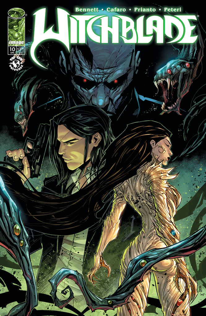 New York City Police Detective Sara Pezzinni is this generation’s bearer of the Witchblade. A supernatural relic meant to balance the forces of darkness and light. Following a savage clash with Mafia hitman Jackie Estacado, this generation’s nascent bearer of The Darkness, Sara is on the prowl for the power behind the bloodthirsty inhuman traffickers—SONATINE! Sara’s troubles with Jackie escalate, and the first appearance of Sonatine heralds something much bigger on the horizon.