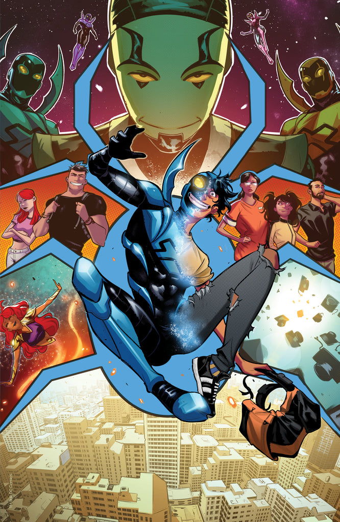 Jaime Reyes has a lot to juggle. Whether it's his finals for senior year or a new villain tearing up El Paso, Jaime is always torn between two worlds. But when his worlds come crashing together at his high school graduation, nothing will ever be the same. A message from the Reach bombards Jaime's scarab, Khaji Da, and it starts throwing off his connection to the device. And as if that wasn't enough, Jaime's parents and friends are pressuring him about his next steps in life. But what's hidden here on Earth that's drawing the Reach back? And where did this new Fadeaway Man come from? Can Jaime find balance in his life and rise to become a true hero, or is it curtains for Blue Beetle?