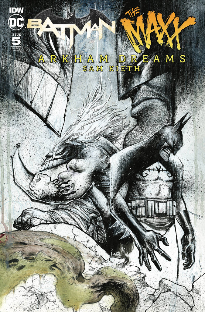 The secret of Dr. Disparu is revealed and all Hell breaks loose as The Joker, Harley, Penguin, and more run amok in Arkham in the dead of night. Meanwhile, Julie (as the Jungle Queen), Maxx and Batman return to the Outback to confront a surrealistic hurricane of Gotham's-and Batman's-deadliest villains!