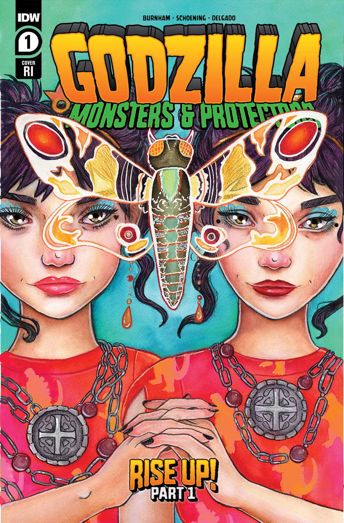 "Rise Up!" Part 1: When a coldly single-minded businessman uses an untested element to create clean energy for a profit, he inadvertently awakens the beast from the deep--Godzilla! Sensing the harm the new energy poses to the planet, Godzilla attacks the heart of the problem--humankind! It will be up to three intrepid middle-school students--with a little magic help from Infant Island--to show Godzilla that not all humans are bad... and that there is still hope for Planet Earth. Reuniting the blockbuster creative team of writer Erik Burnham, artist Dan Schoening, and colorist Luis Antonio Delgado (Ghostbusters), Godzilla: Monsters & Protectors promises to romp and stomp fans--old and new--of the greatest kaiju ever like never before!